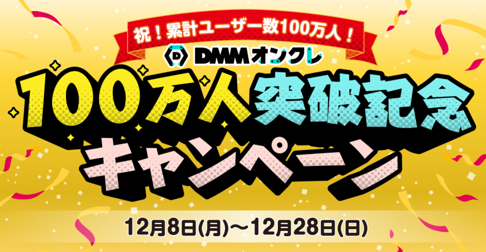 DMMオンクレが100万人突破記念キャンペーン開催中!自宅で24時間景品ゲット!