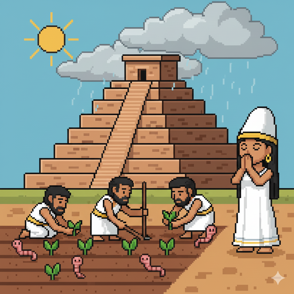 作者は文明を繁栄させるために、毎週タネを畑に撒いてどれだけ実るかを、恵みの雨に期待しつつ文明間で競うワケですが我々ミミズや微生物が少なければ、いくらタネを植えようと作物は思うように実りません。