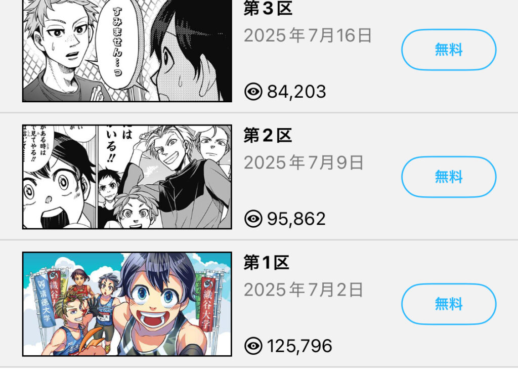 まずエキデンとピングを見てみると、アクの強い画風に垢抜けないタイトルで始まる前から読者を選別したようで、実際に第一印象を測る指標として本サイトも愛して止まないジャンプ+試し読みPVは壊滅状態でした。