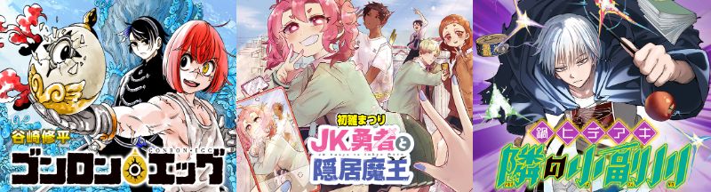 この改編では、他媒体でファンタジー作品をいくつか掲載してた谷崎先生によるゴンロン・エッグと、本誌に載った読み切りからの連載化として隣の小副川とJK勇者と隠居魔王が入ってきました。
