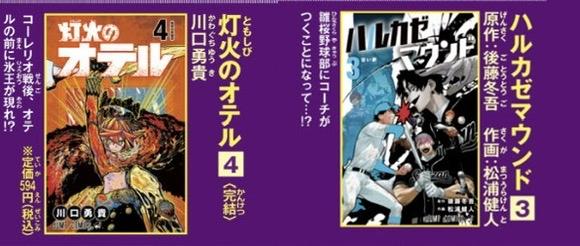 漫画界の大看板ワンピを始めとして、上位層のサカモト&魔男&さむわん、中堅とひまてん!&しのびごと、記念すべき1巻が出たゴンロン・エッグ、打ち切り済のオテル&ハルカゼといった具合に様々な立ち位置の作品が集結した賑やかなラインナップです。