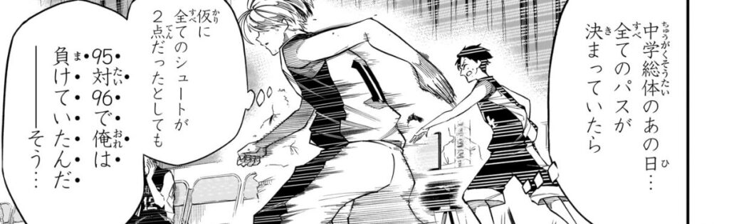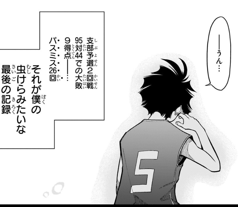 これについては「いつもイキって無茶して誰もいない所にパスを出してしまう」とのことですが、そんな適正皆無なPG(サッカーのボランチ的ポジション)を副キャプテンの背番号である5番に据えたうえで全国優勝する学校に95-44と、抱えた爆弾の割にはかなり善戦した主人公の学校。