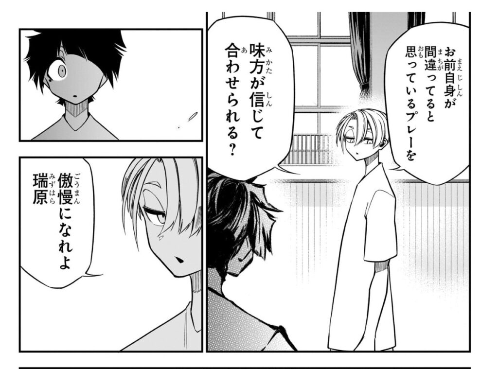 取り敢えずここまでで問題点を考察するなら部活バスケのセオリーや常識から絶妙にズレててモヤることと、やりたい描写のためにそれと関係する前後の展開との因果の結びつきがこんがらがってることでしょうか。