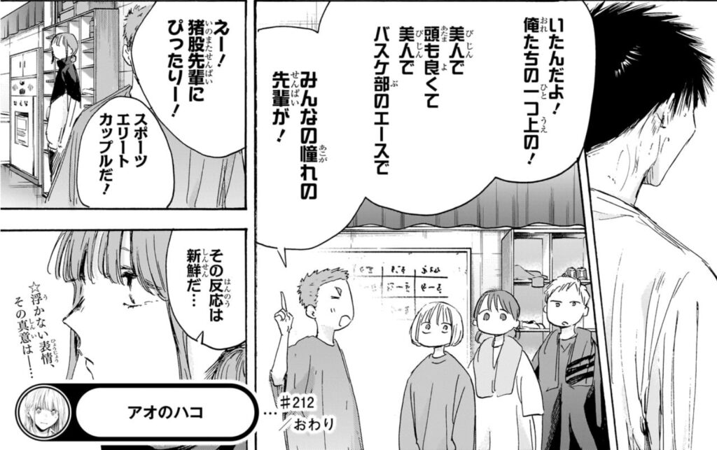 アオハコも先輩が卒業しても普通に話が続いてることから引き伸ばし説が出てますが、個人的には確かに引き伸ばしはしてるけど、当初構想でも先輩卒業後も連載は続けるつもりだったのかなと感じます。
