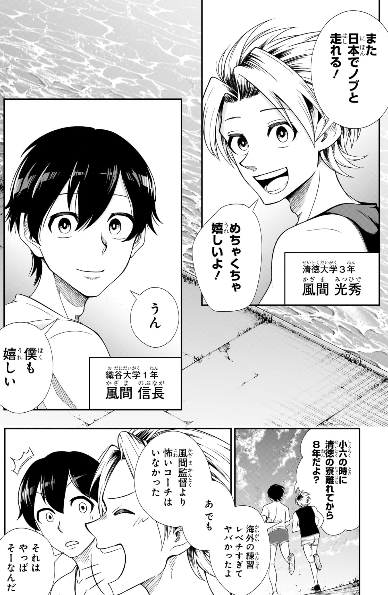 信長の学校(織谷)の天才ランナーと、実家の学校(清徳)のスポーツ漫画には絶対い無邪気で野性的強さを持つランナーによる2走でのレースシーン。
