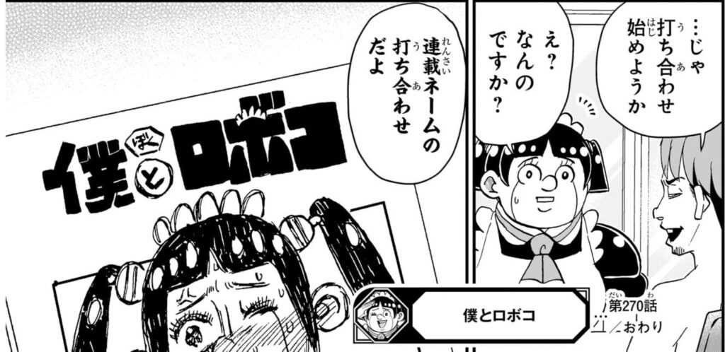 とはいえ上記作品群がそう遠くないうちに終わるであろうことは以前より予想する人も多かったので特に驚くことでもないですが、なんと僕とロボコまで完結の準備をしているような動きを見せてきました。これは驚きです。