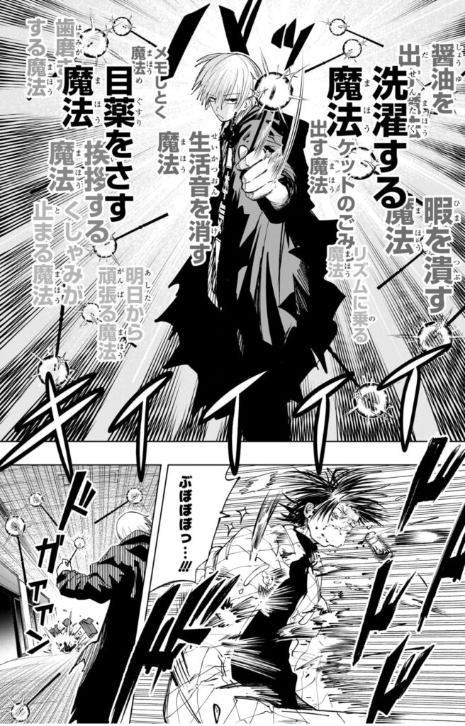 坂本の戦闘スタイルは限られた状況下で我々に馴染みのある物品で敵を倒すから面白味があるのであって、魔法というファンタジー要素ありきで、しかも杖をたくさん持ってて無数に魔法を使えるという設定だと「こんなバトル展開よく思いつくな」という脱帽に似た読み味には繋がりにくいと感じました。