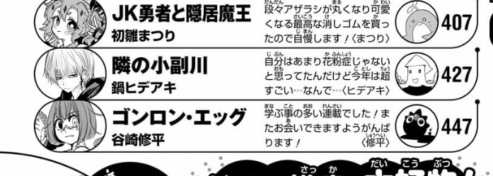 週刊少年ジャンプ2026年19号で隣の小副川が終了となりました。全21話