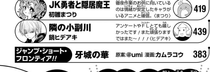 JKも今週の付録のスケジュール帳から霊圧が消えてるあたり打ち切りでしょうし酷い3inでしたね