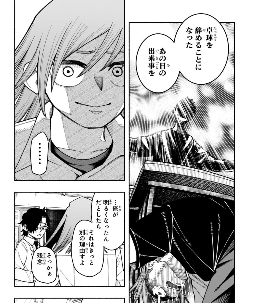 自分としては「否」側であり、卓球という競技のフォーマットの中でいかに作者の妙想を見せれるかに期待してただけに、早々に卓球から逸脱した展開を出されて今後を不安視させるものではありました。