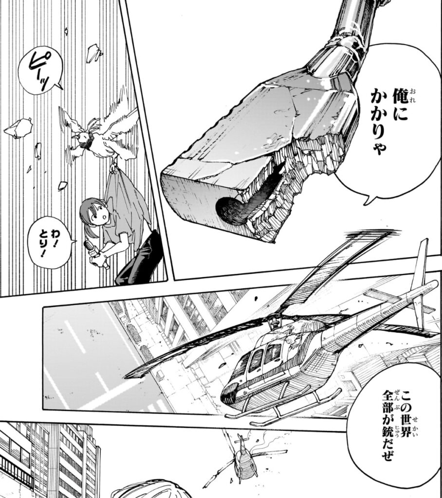 そんな彼ですが、熊埜御との戦い(2回目)ではお天気ニュースのヘリを狙撃しておもっくそ一般人を巻き込んでました。