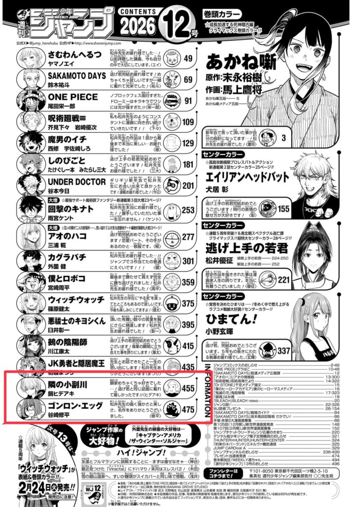 ゴンロンが掲載順ドベ1を死守する傍らで、掲載順ドベ2を手堅いものにする隣の小副川