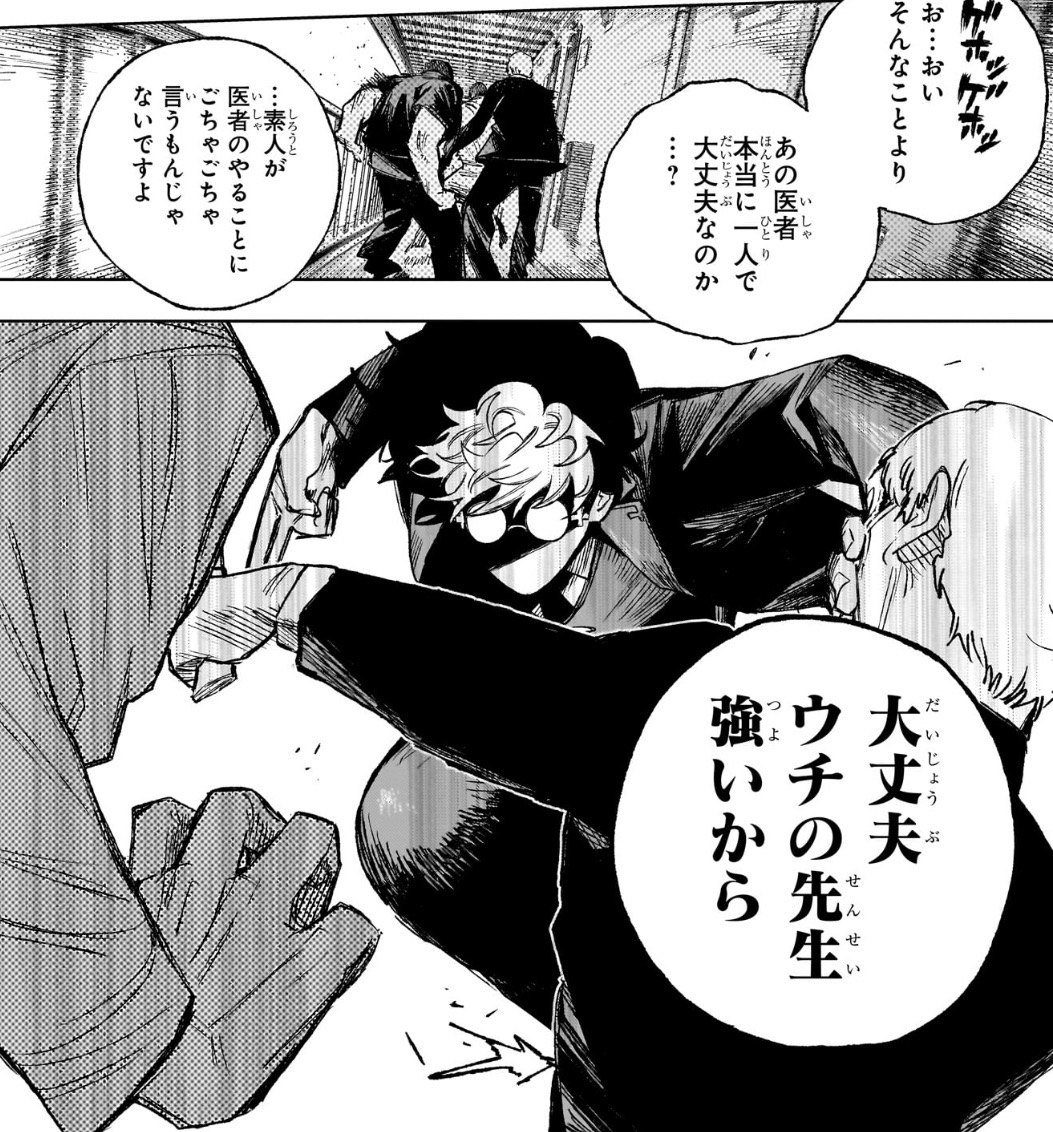 一応潜入捜査してた警視さんを助けたりしたのですが、それを通して特に何かが進展したり医療スキルを見せるワケでもなかったので「2話目でやる必要あった…?」というのが総括した感想ではあります。